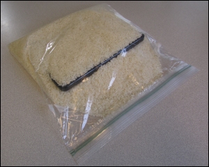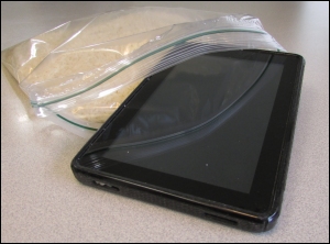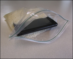 When the time has passed, open up the bag, remove your Kindle Fire, and wipe off the rice dust.