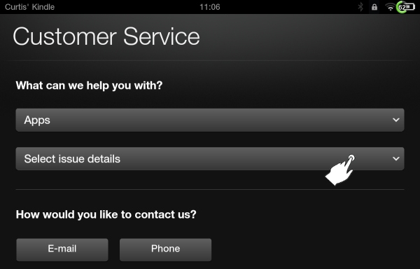 If you have a Kindle Fire issue, the fastest way to receive help is to contact Amazon's Customer Service department directly.