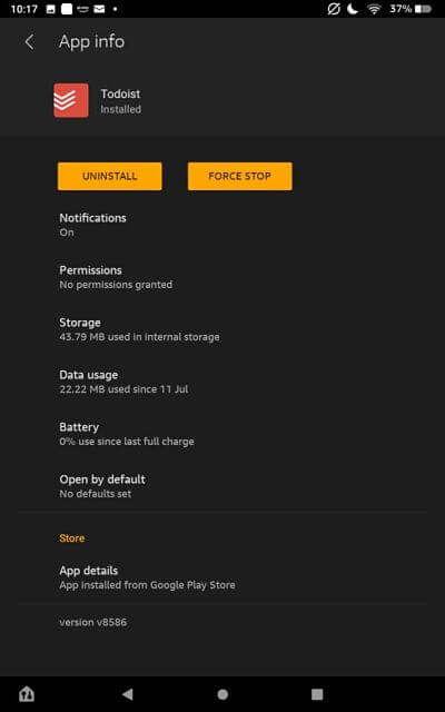 Notice how Google Play Store is one of my recently opened apps? Along with the handy dandy list app Todoist? Wondering how I have these non-Amazon apps on my device?