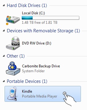 If you don't get this window go to "My Computer" and click on "Kindle":